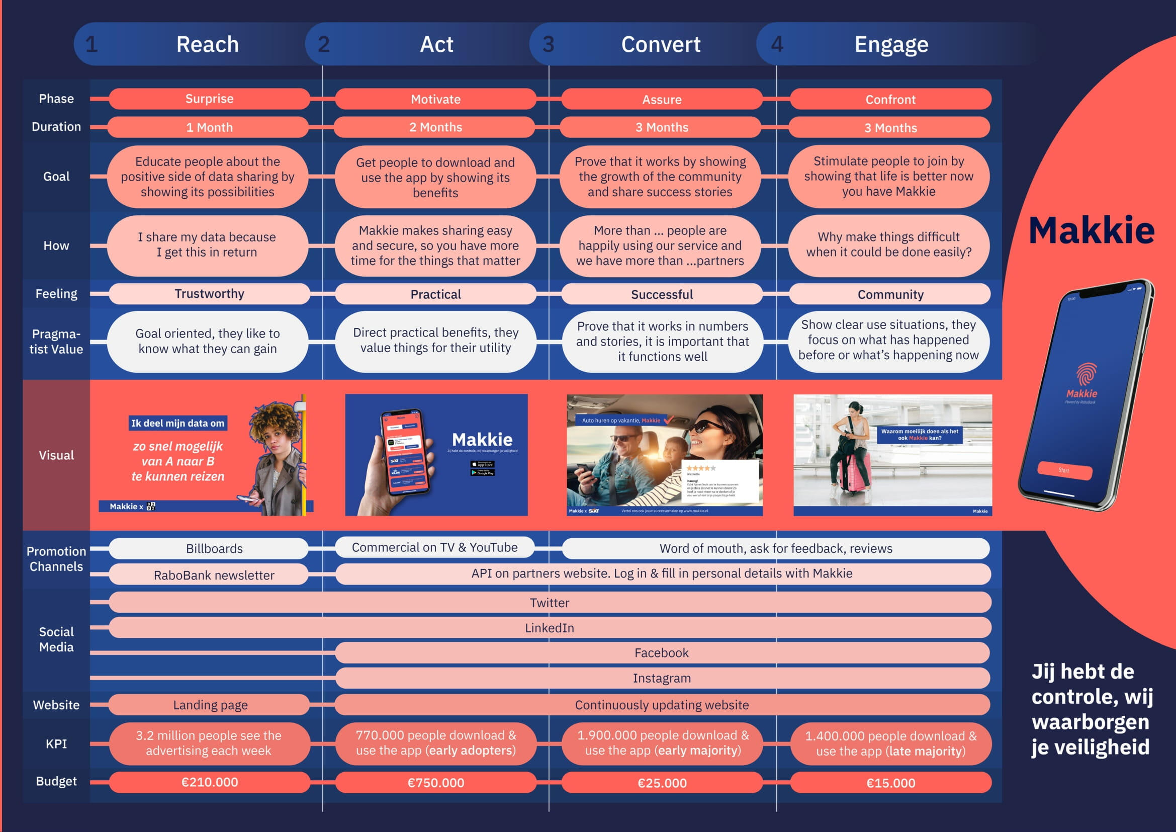 I led the strategic positioning and commercialization roadmap for "Makkie," a sovereign data wallet initiated for Rabobank. I aligned the competing interests of major Dutch financial institutions to create a unified brand that balances institutional security with frictionless user experience.Challenge